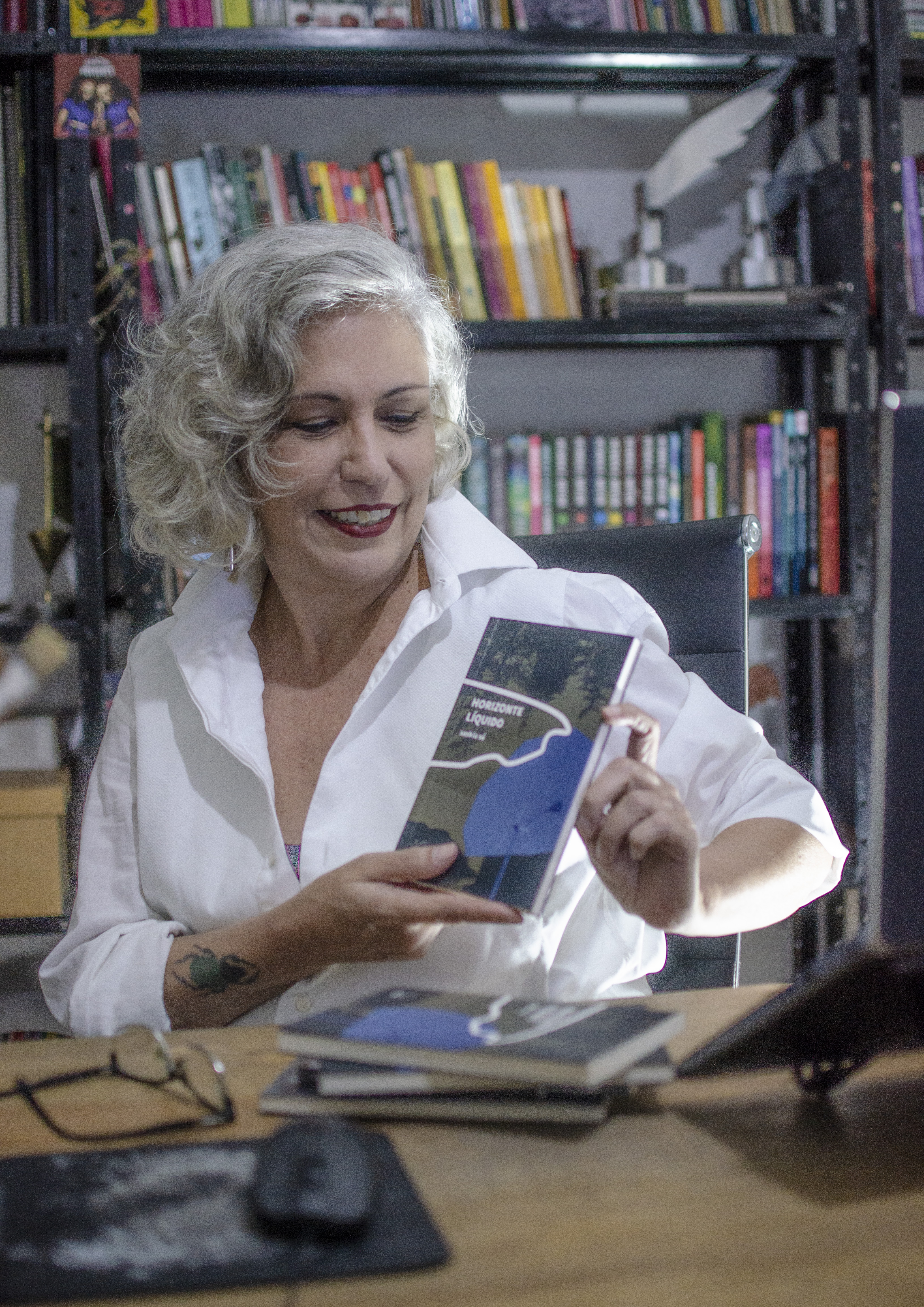 O livro está à venda no site da editora https://editoraurutau.com/titulo/horizonte-liquido ou com a autora.